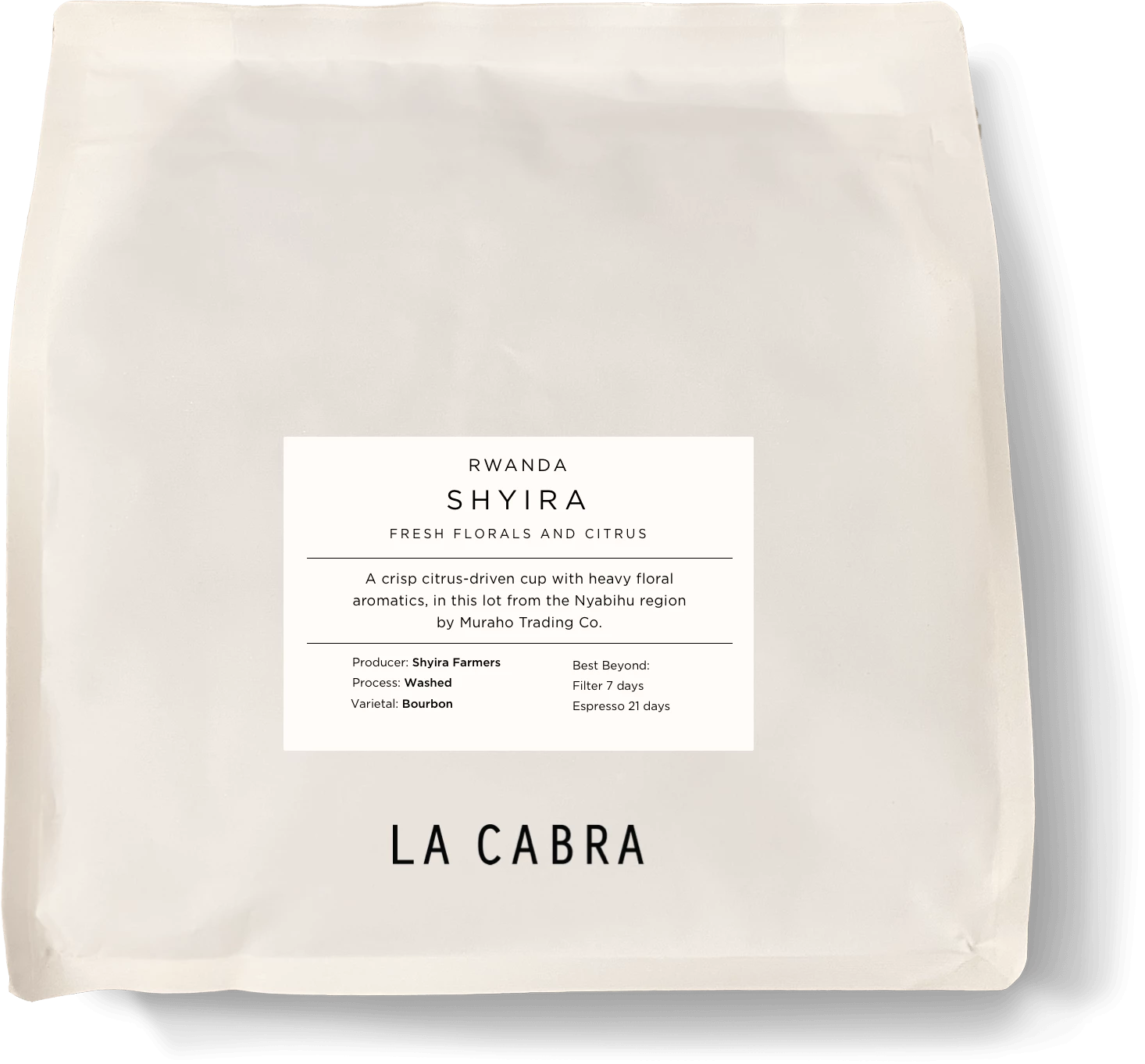 A crisp citrus-driven cup with heavy floral aromatics, in this lot from the Nyabihu region by Muraho Trading Co.